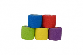 Bande élastique de soins et de travail. Disponible en bleu, rouge, rose, jaune, violet et vert citron.